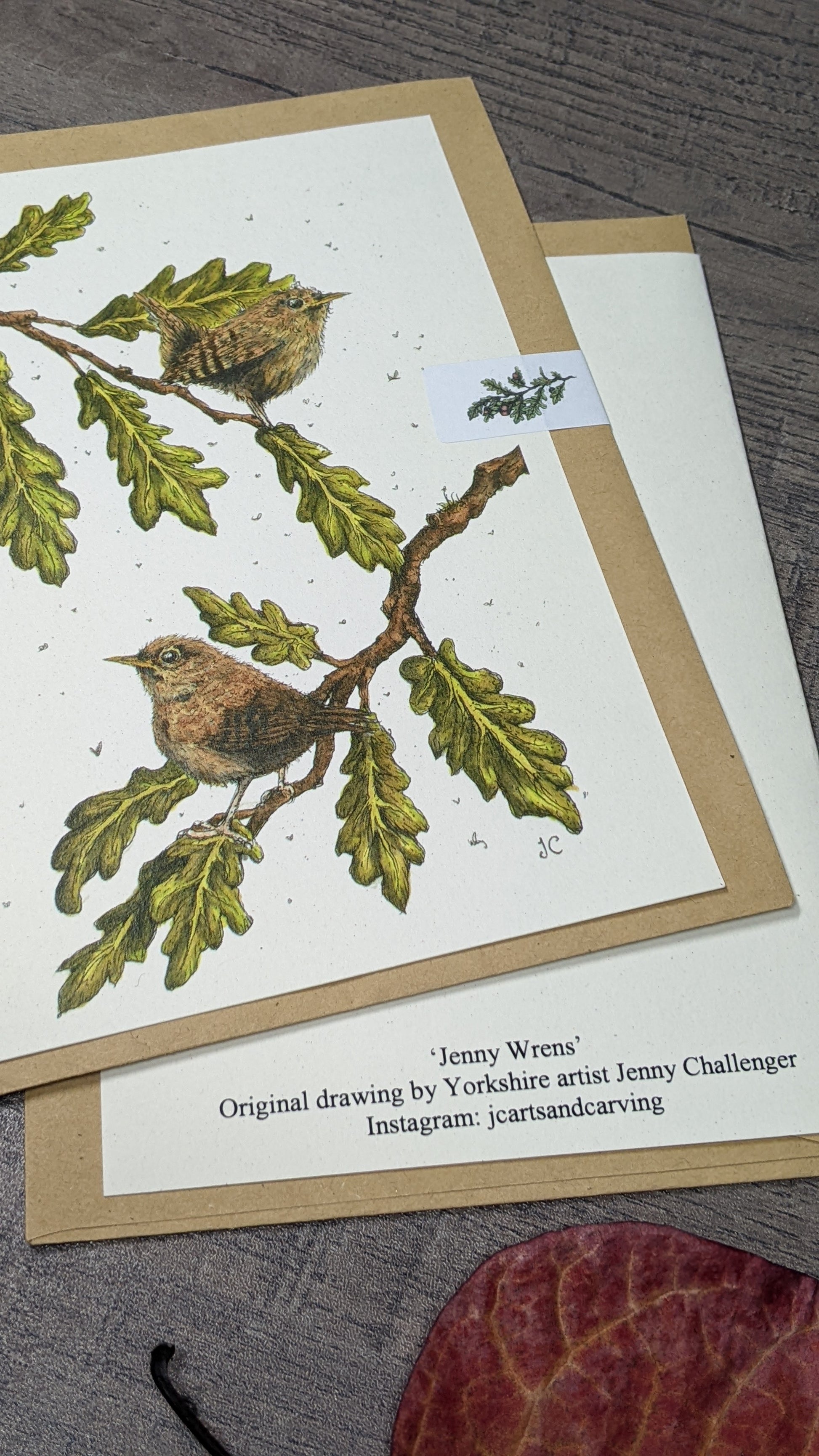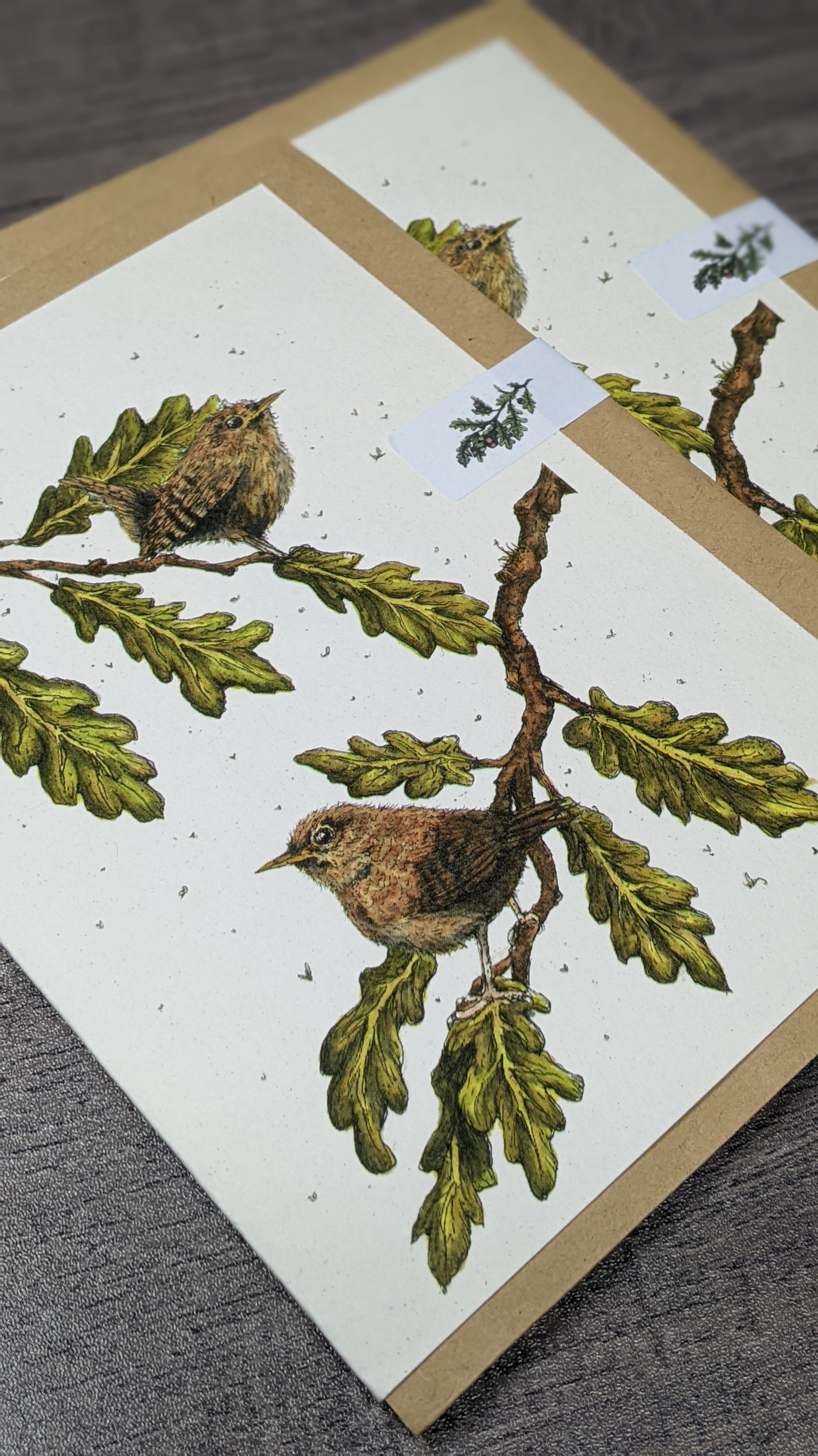 Greeting card printed on ivory card, from my original illustration "Jenny Wrens".