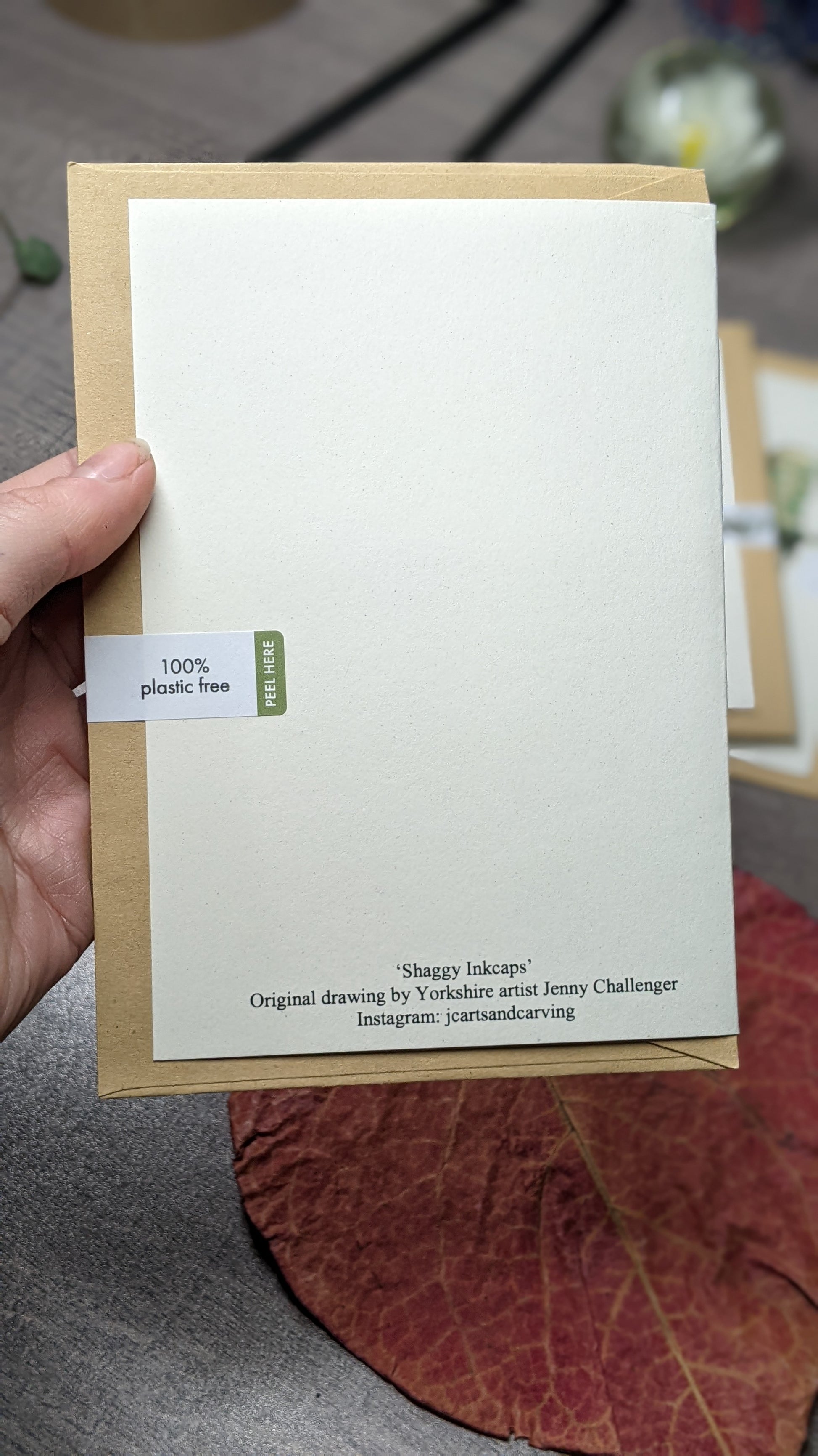 Greeting card printed on ivory card, from my original illustration "Shaggy Ink Caps".